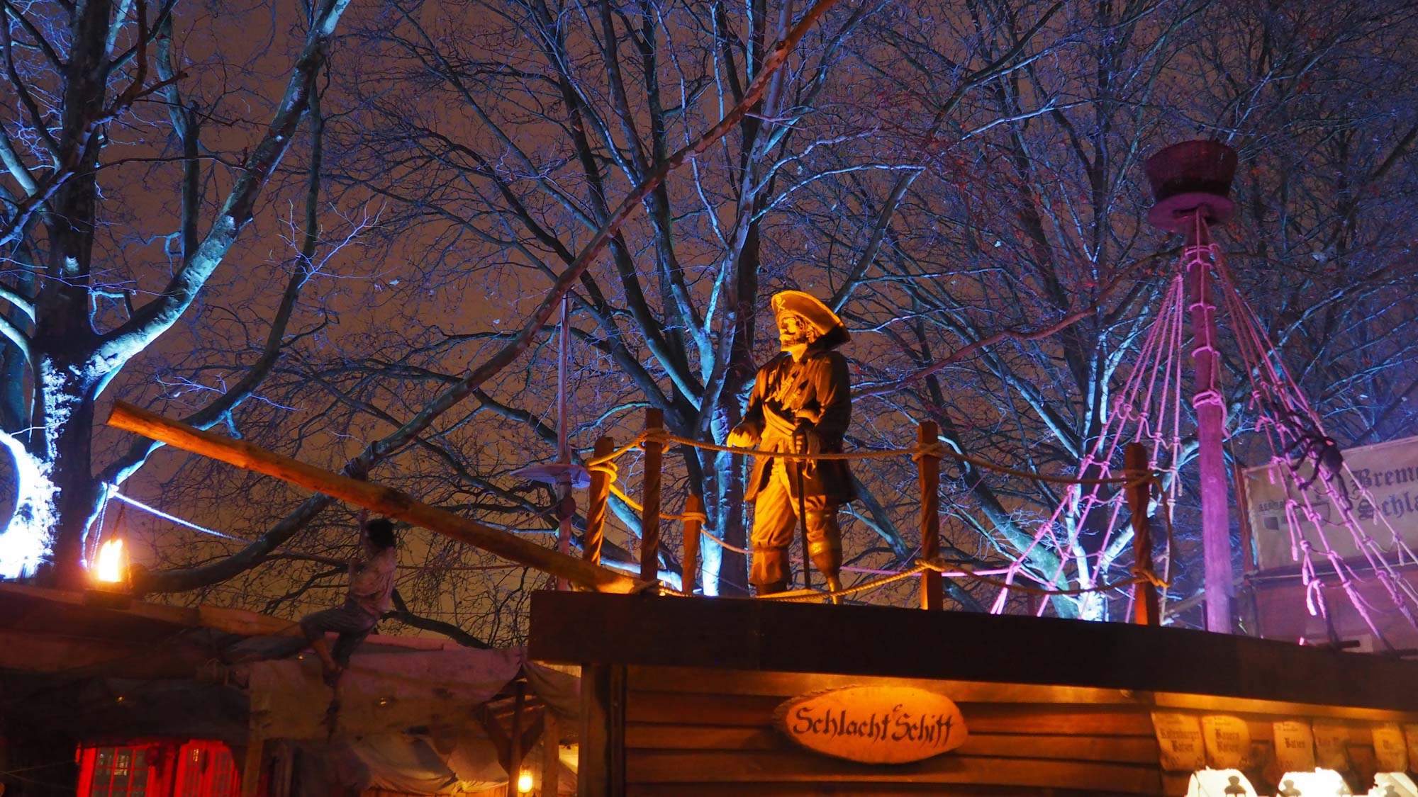 Mit dem Blick übers Wasser wird das winterliche Ambiente durch die eisblauen Lichter verstärkt und lädt Groß und Klein zum Schlachte-Zauber an der Weserpromenade ein. Die Musikanten, Gaukler, Schmiede, Gerber und Künstler bringen einen mittelalterlichen Flair mit. Besucher und Besucherinnen können sich auf Arbeiten aus Holz und Keramik, Gerüche von Feuer, Gewürzen und Weihrauch sowie Gewänder aus Filz und Tüchern in einer winterlichen Stimmung freuen.