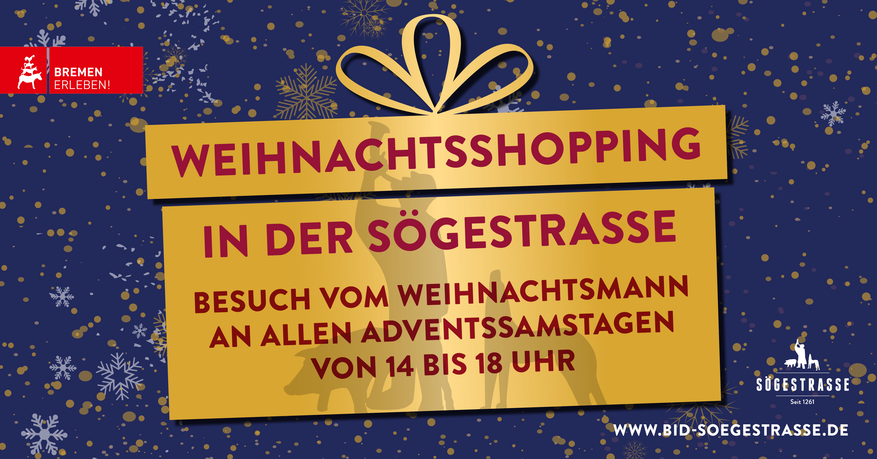 Besucherinnen und Besucher, die an den Adventssamstagen durch die Sögestraße bummeln, erleben zudem eine genussvolle Überraschung. Zwischen 14 und 18 Uhr verteilt der Weihnachtsmann köstliche Elisenlebkuchen der traditionsreichen Konditorei Knigge.