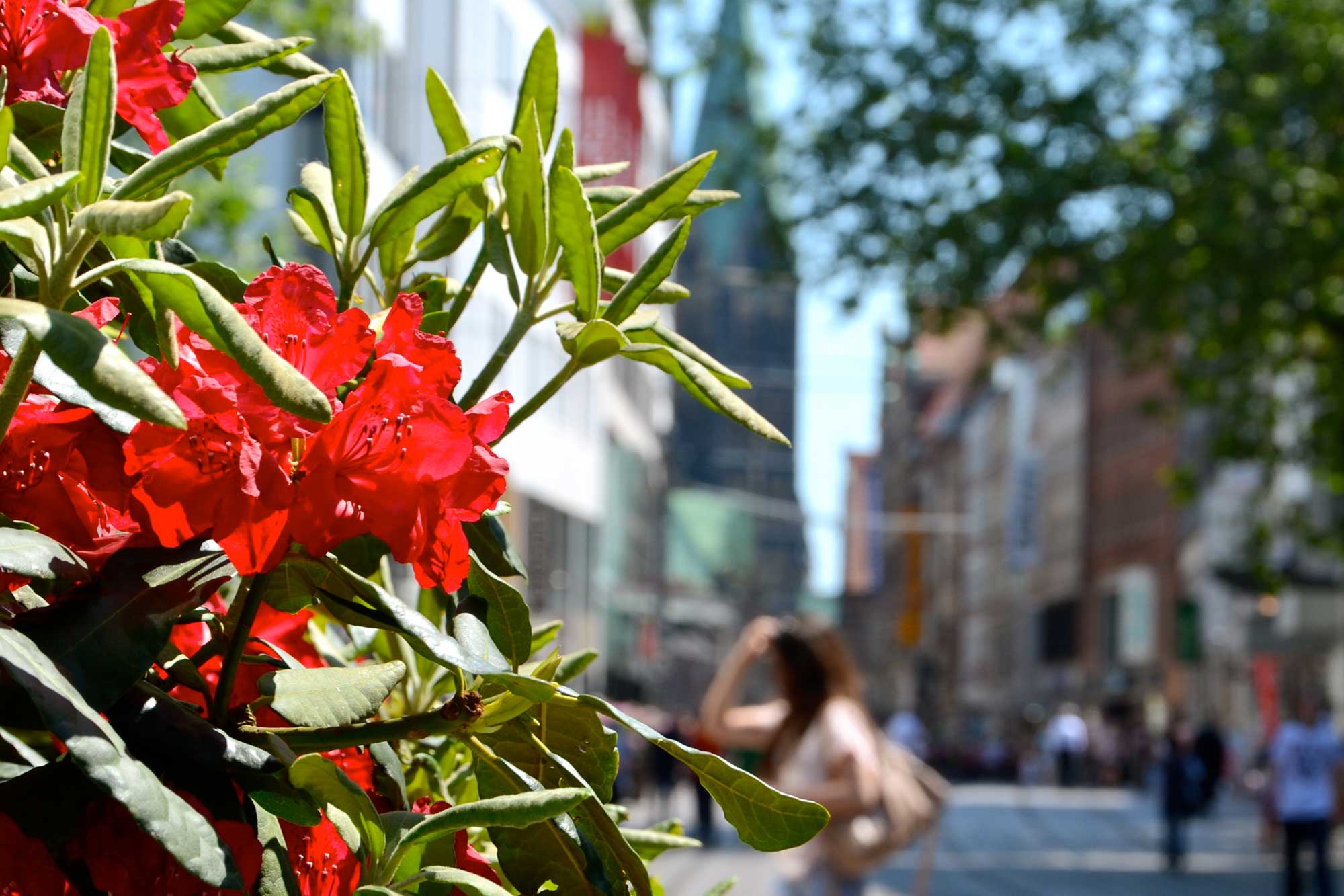Die Quartiere und Einkaufsstraßen erstrahlen im blumigen Ambiente