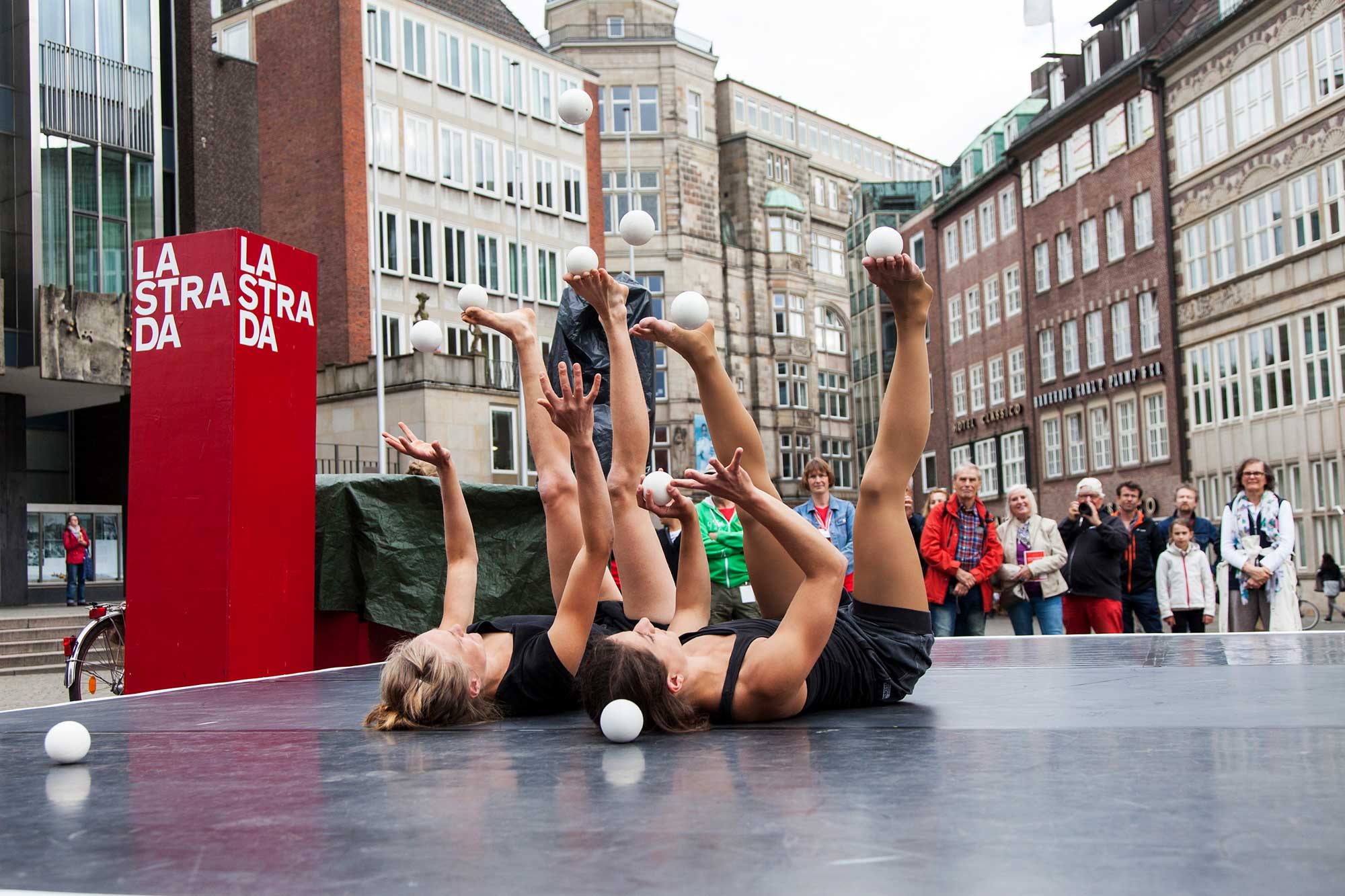 Urbaner Raum, gefüllt mit Artistik, Tanz und Performance, soweit das Auge reicht. Erneut können sich zehntausende Besuchende auch 2025 auf ein kurzweiliges und ebenso anspruchsvolles Programm freuen, das überrascht und amüsiert, berührt und erstaunt. Nach der konzeptionellen Neuaufstellung im vergangenen Jahr kehrt LA STRADA 2025 zu gewohnter Größe zurück und wird mit Bühnen in der Innenstadt und in den Wallanlagen die beliebten und bekannten Festivalorte neu beleben. Wie im vergangenen Jahr, wo erstmals der Ullrichsplatz und der Ziegenmarkt zum Spielort für LA STRADA wurden, ist auch das Viertel am Sonntag wieder dabei. Neu dazu als Austragungsorte des Festivals kommen die Böttcherstraße, der Schnoor, der Garten des Institut Français und der Goetheplatz vor dem Theater Bremen. So breitet sich das Festival LA STRADA weiter aus und hat die Stadt für ein Wochenende fest im Griff und jede Menge atemberaubender Zirkuskunst und Theaterperformances auf den Bühnen. LA STRADA ist ein Festival für alle, denn die Spielorte unter freiem Himmel sind frei zugänglich. Die Künstlerinnen und Künstler spielen „auf den Hut“, denn das begeisterte Bremer Publikum zeigt sich bekanntermaßen recht spendabel.