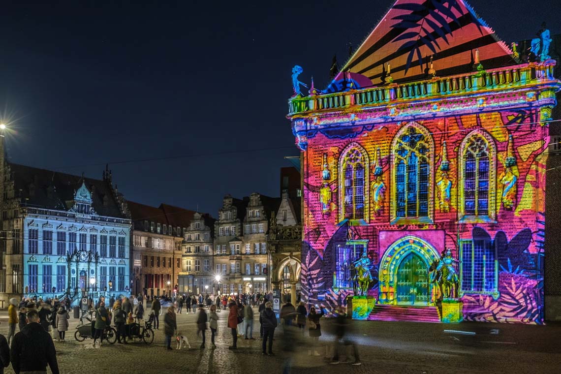 In den ersten beiden Jahreswochen erstrahlten insgesamt 10 Fassaden in der Altstadt und im Schnoor in bunten künstlerischen Bildern. Täglich zwischen 17.30 Uhr und 21.30 Uhr lockten die Illuminationen viele begeisterte und neugierige Besucherinnen und Besucher in die Innenstadt und versprachen so die Lichtblicke in der dunklen Jahreszeit. Viele freudige „Aah“‘s und „Ooooh“s so wie glückliche Gesichter waren rund um den Marktplatz zu beobachten – selbst bei dem typischen Bremer Wetter. Viele schöne Momente sind das Resultat der Lichter der City und wir freuen uns schon auf die nächsten Illuminationen.